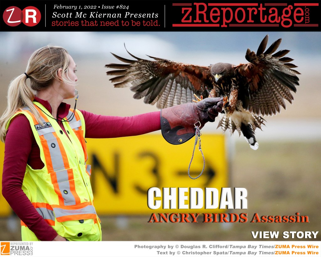 CHEDDAR, is a juvenile hawk who craves the kill. This bird of prey, also called a raptor, patrols the Tampa International Airport relentlessly. First used to drive nuisance birds away from planes in 40s at a Scottish airfield. Success lead to similar programs around the globe. Cheddar and falconer Jackie Hurd, been hired to deal with unwanted birds, threatening to damage or bring down planes. Flock of large birds on takeoff is airports biggest fear. It’s a bloody business, guarding planes from bird strikes. Cheddar is on the job. Come and Meet ‘CHEDDAR: The ANGRY BIRDS Assassin’