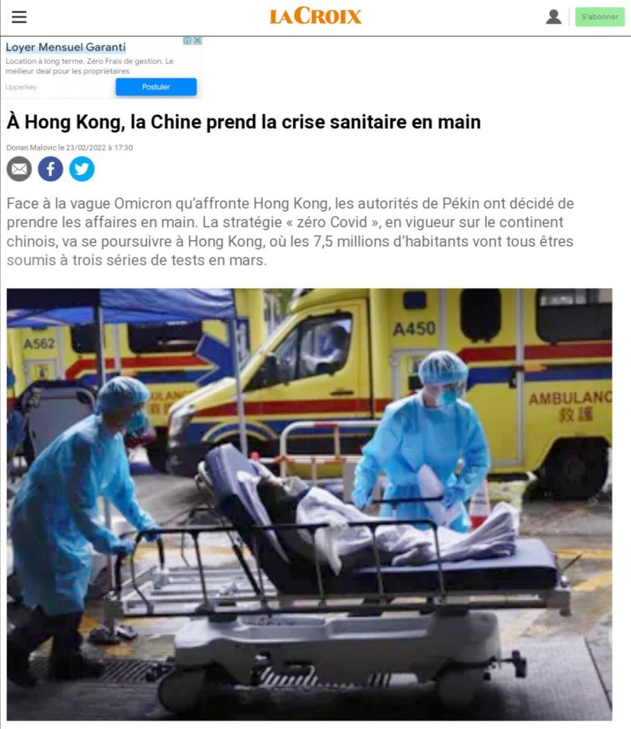 February 19, 2022, Hong Kong, China: A patient is being carried out of the ambulance at Caritas Medical Centre in Hong Kong. Medical system in the City buckles as the Omicron Variant outbreak is hitting the city with unprecedented force and scale since the first Coronavirus infected the City in early 2020. (Credit Image: © Liau Chung-ren/ZUMA Press Wire)