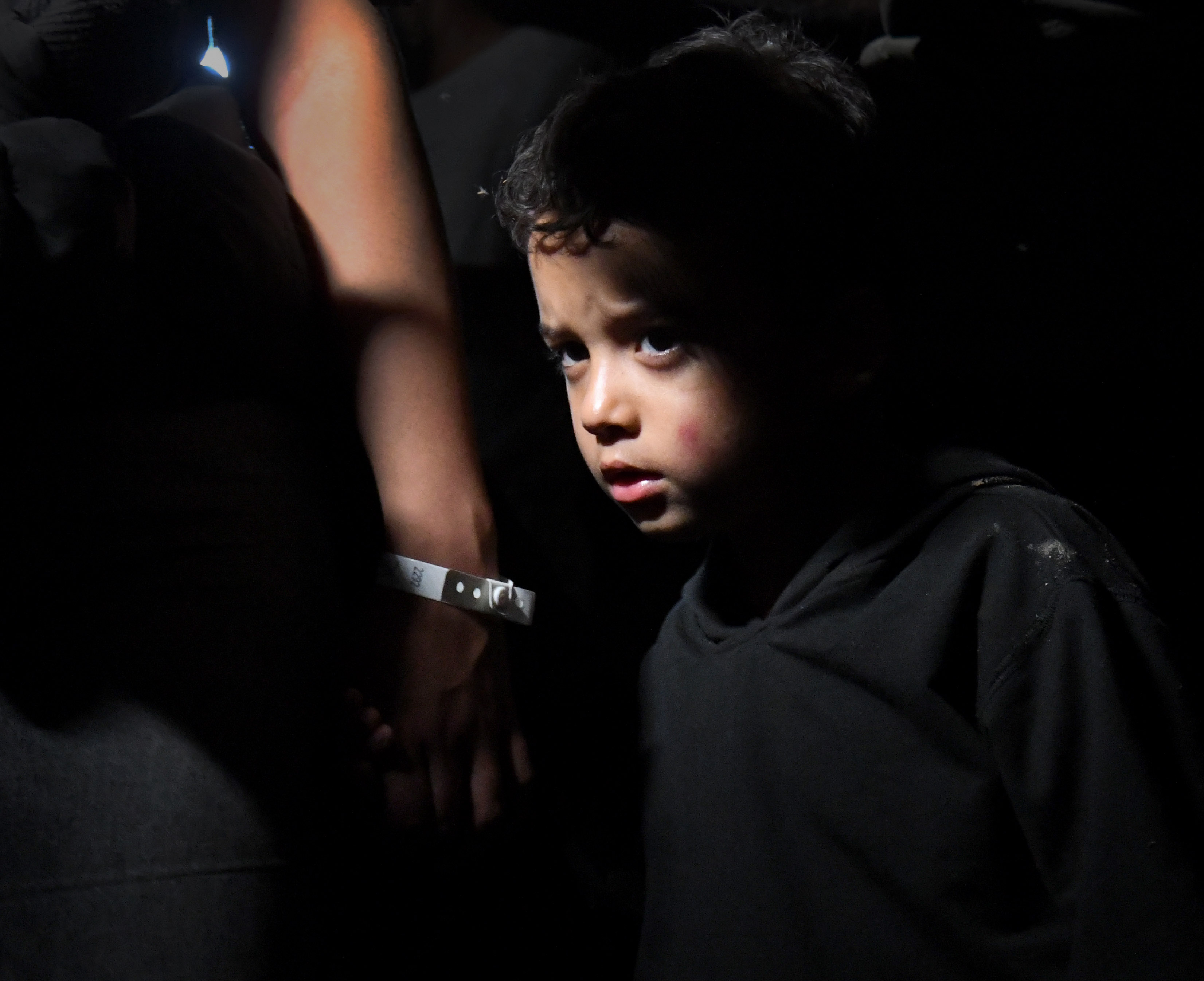 May 4, 2021, Roma, Texas, USA: A young boy looks on as asylum seekers who have just crossed the Rio Grande River in boats with smugglers wait for directions from Border Patrol agents before being processed. (Credit Image: © Carol Guzy/ZUMA Press Wire)