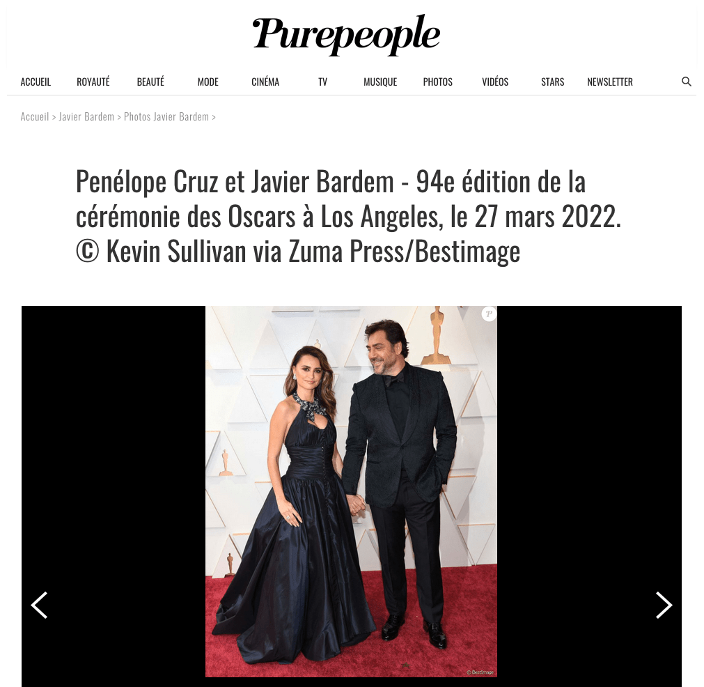 March 27, 2022, Los Angeles, California, USA: Actress PENELOPE CRUZ wearing a Chanel dress with husband and actor JAVIER BARDEM during red carpet arrivals for the 94th Academy Awards, presented by the Academy of Motion Picture Arts and Sciences (AMPAS), at the Dolby Theatre in Hollywood. (Credit Image: © Kevin Sullivan via ZUMA Press Wire)