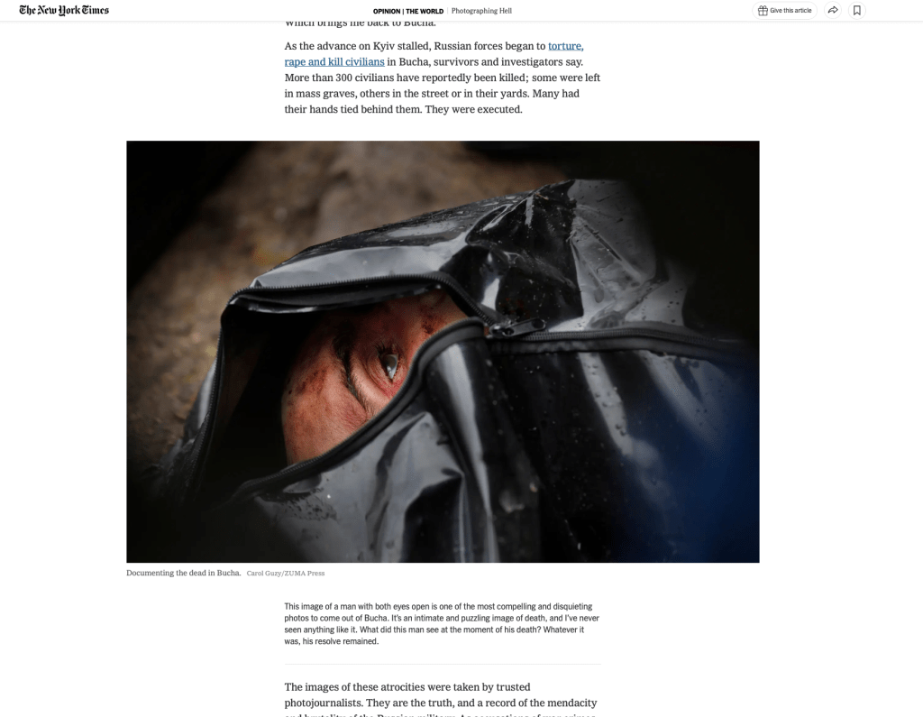 ZUMA’s Carol Guzy In the New York Times Posted by ZUMAPRESS.com on April 18, 2022 Posted in: ZUMALAND. Leave a comment Scott Mc Kiernan, Founder & Editor-in-Chief, ZUMA Press Share this: Share on Facebook (Opens in new window) Facebook Share on LinkedIn (Opens in new window) LinkedIn Share on X (Opens in new window) X Like Loading... Related Posts navigation ← ZUMA Photographers Capture 2 of BuzzFeed Travelers Most Beautiful Places ZUMA’s Pavlo Bahmut in the Wall Street Journal →