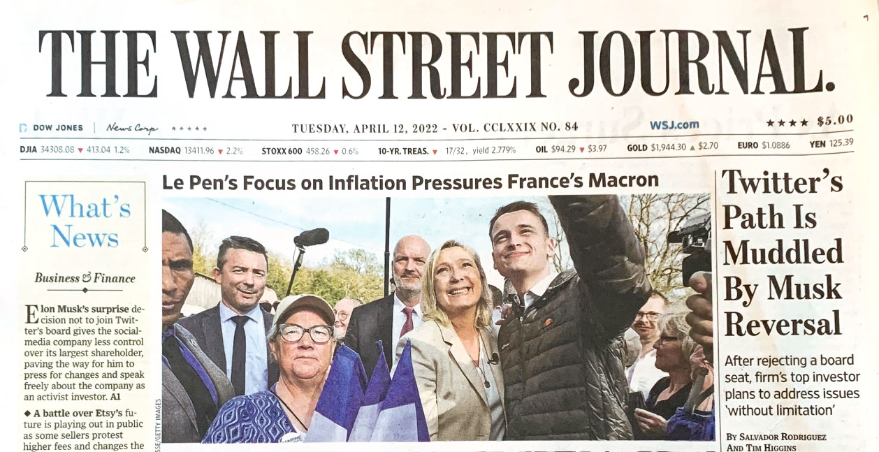 April 11, 2022, Soucy, France : MARINE LE PEN, center, smiles while taking a selfie with supporters. Le Pen is travelling to Soucy (Yonne) on Monday, the day after her qualification in the second round of the presidential election. (Credit Image: © LE PARISIEN/Olivier Lejeune/Maxppp via ZUMA Press)