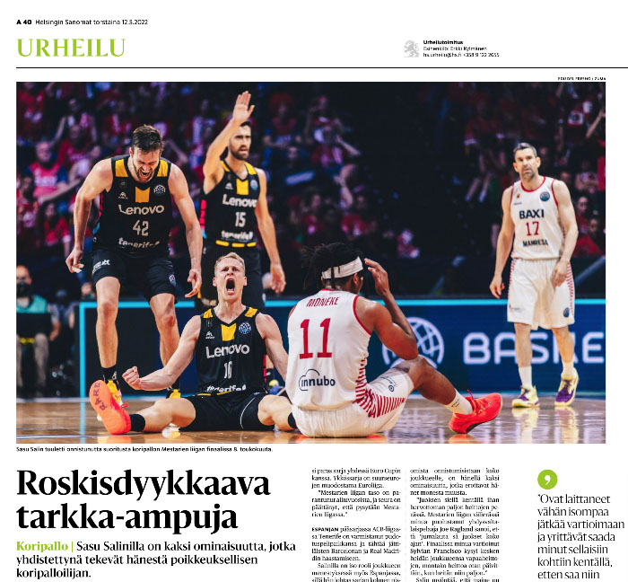 May 8, 2022, Bilbao, Basque Country, Spain: SASU SALIN (10) of Lenovo Tenerife celebrating their victory in the Basketball Champions League final game against Baxi Manresa at Miribilla Bilbao Arena. Bilbao hosted the first ever Basketball Champions League Final 4 in a neutral venue. (Credit Image: © Edu Del Fresno/ZUMA Press Wire)