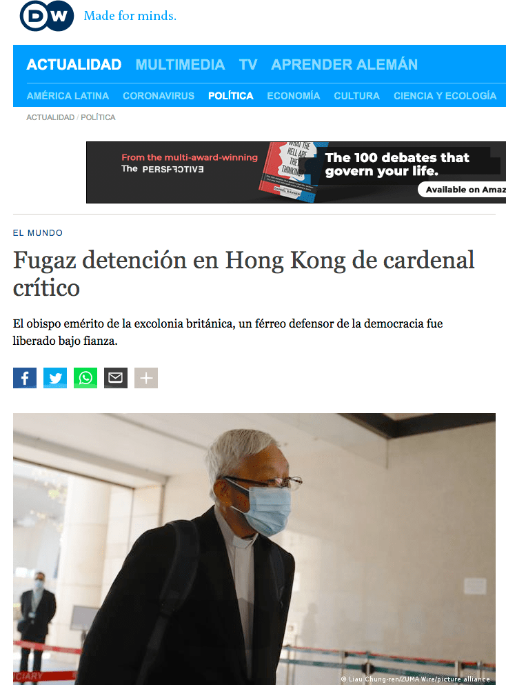 February 16, 2021, HONG KONG, CHINA: Cardinal of the Hong Kong Catholic Church, retired Bishop and persistent advocate for democracy, Joseph Zen ( 89 ) arriving at West Kowloon Magistracy to audit trial of 9 accused democrats who are charged under the name, ‘organizing unauthorized assembly’ during civil disobedience in 2019. (Credit Image: © Liau Chung-ren/ZUMA Wire)