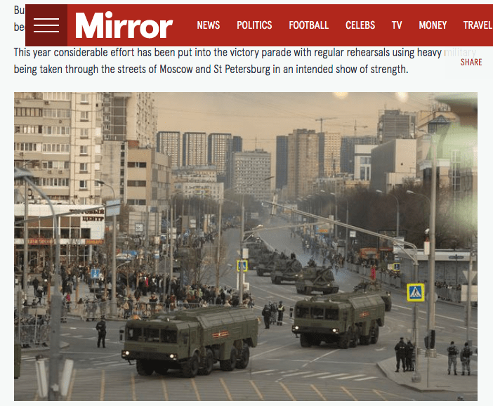 April 28, 2022, Moscow, Russia: Military equipment that will take part in the parade is moving along the streets of Moscow to the Red Square area to participate in the rehearsal of the military parade in honor of Victory Day on Red Square in Moscow, Russia, Monday, April 28, 2022. The parade will take place on Red Square in Moscow 9 May in honor of the 77th anniversary of the Victory in the Great Patriotic War. (Credit Image: © Victor Berezkin/ZUMA Press Wire Service)