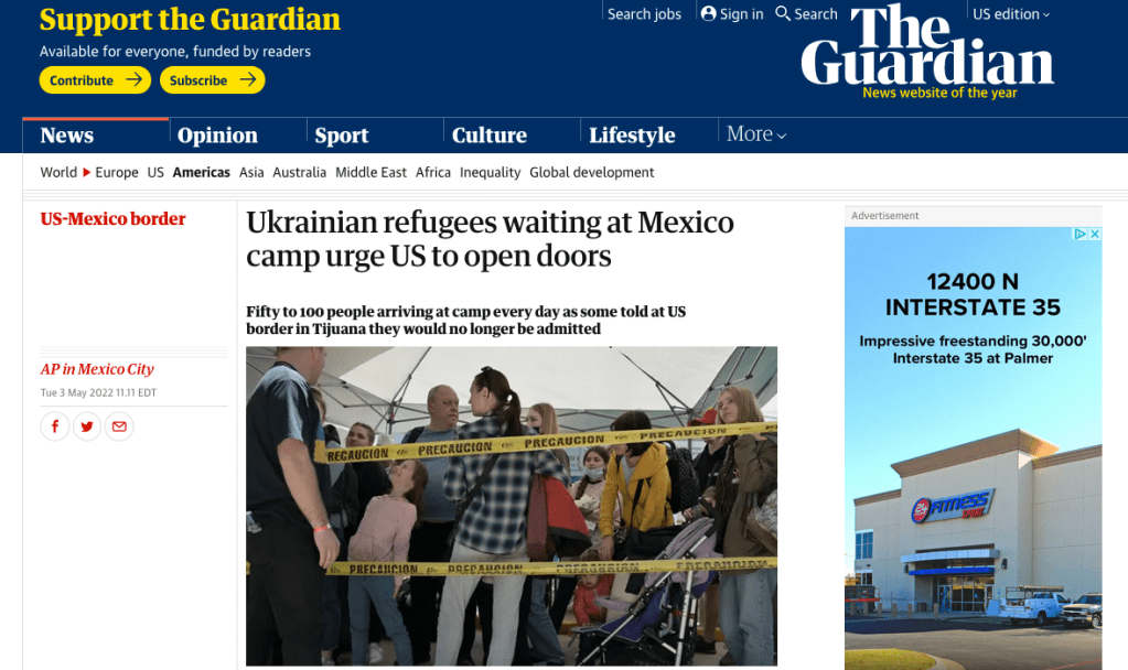April 21, 2022, Tijuana, Baja California, Mexico: Ukrainian refugees waiting for their turn to get bused for processing to enter the U.S. at the Benito Juarez Sports Complex in Tijuana. The Biden Administration announced today that the United States will no longer accept Ukrainian refugees who arrive at the U.S.-Mexico border to seek asylum, instead they will proceeded directly when arriving only via Europe to the States. (Credit Image: © Carlos A. Moreno/ZUMA Press Wire)