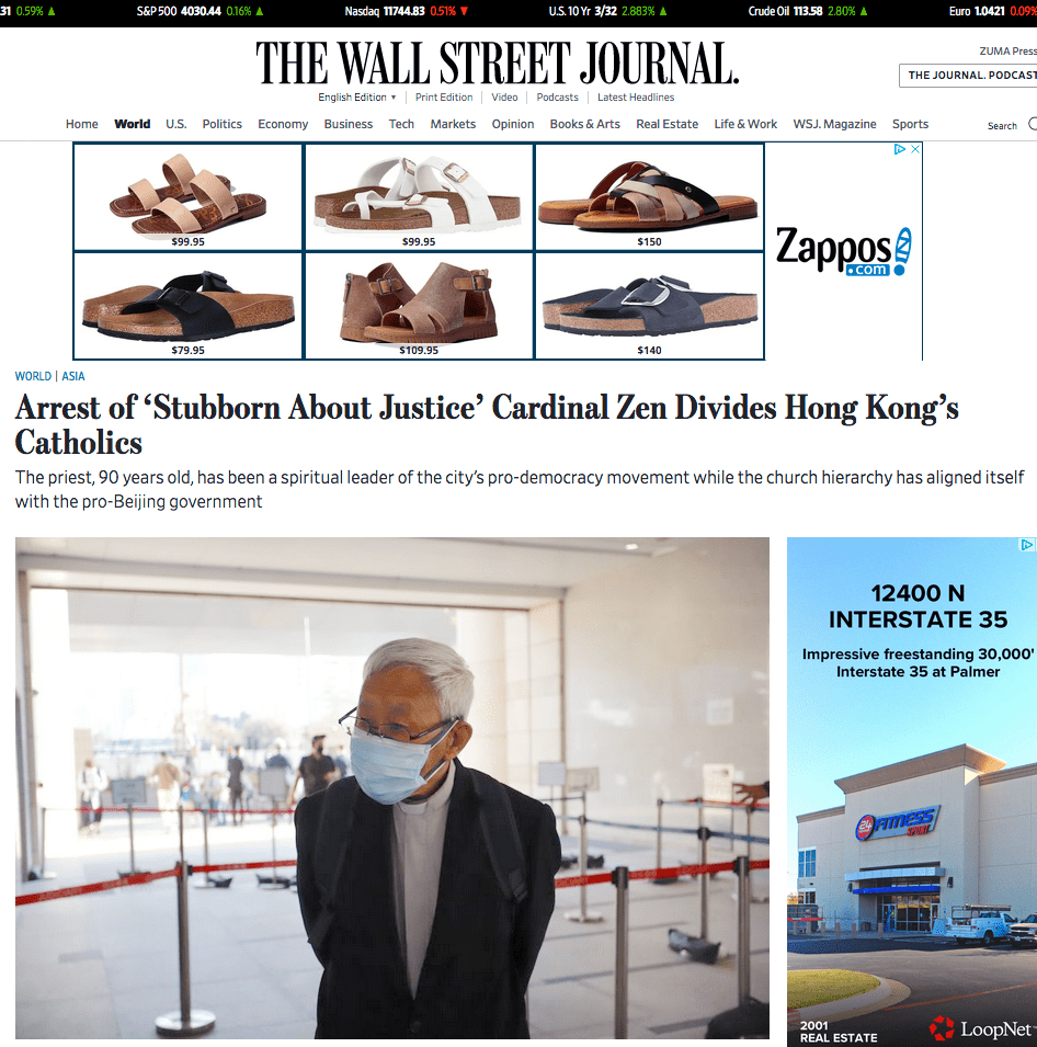 February 16, 2021, HONG KONG, CHINA: Cardinal of the Hong Kong Catholic Church, retired Bishop and powerful advocate for democracy in the religious sector of Hong Kong society, Joseph Zen ( 89 ) walking into West Kowloon Magistracy this morning to audit a trial of 9 Hong Kong Democrats who are accused of ‘organizing unauthorized assembly’ during civil disobedience in 2019.Feb-16,2021Hong Kong.ZUMA/Liau Chung-ren (Credit Image: © Liau Chung-ren/ZUMA Wire)