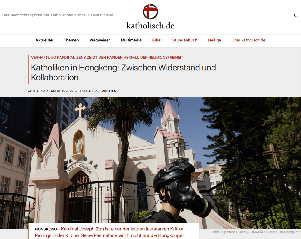 November 17, 2019, Hong Kong, China: A riot police in full protective gear stand guard in front of Catholic Church near Hong Kong Polytechnic University during student’s stand-off with the police outside the Faculty at noon today. (Credit Image: © Liau Chung-ren/ZUMA Wire)