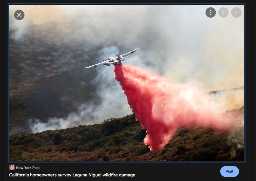 May 11, 2022, Laguna Niguel, California, USA: A fire aircraft drops red fire retardant the Coastal wildfire in Laguna Niguel. A wind-driven wildfire that broke out Wednesday in brush near Laguna Niguel grew to 200 acres, burned about 20 homes and prompted the evacuation of nearby residences and a luxury resort, fire officials said. (Credit Image: © Ruaridh Stewart/ZUMA Press Wire)