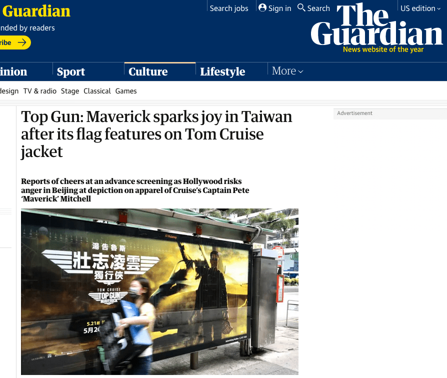 May 26, 2022, HONG KONG, CHINA: Citizen walking past movable screen advertising Hollywood mega movie TOP GUN-Maverick in the city centre Hong Kong. After two years of waiting due to the global Pandemic which seriously affected American Film industries, Hollywood mega movie TOP GUN-Maverick is finally on show today in Hong Kong. (Credit Image: © Liau Chung-ren/ZUMA Press Wire)