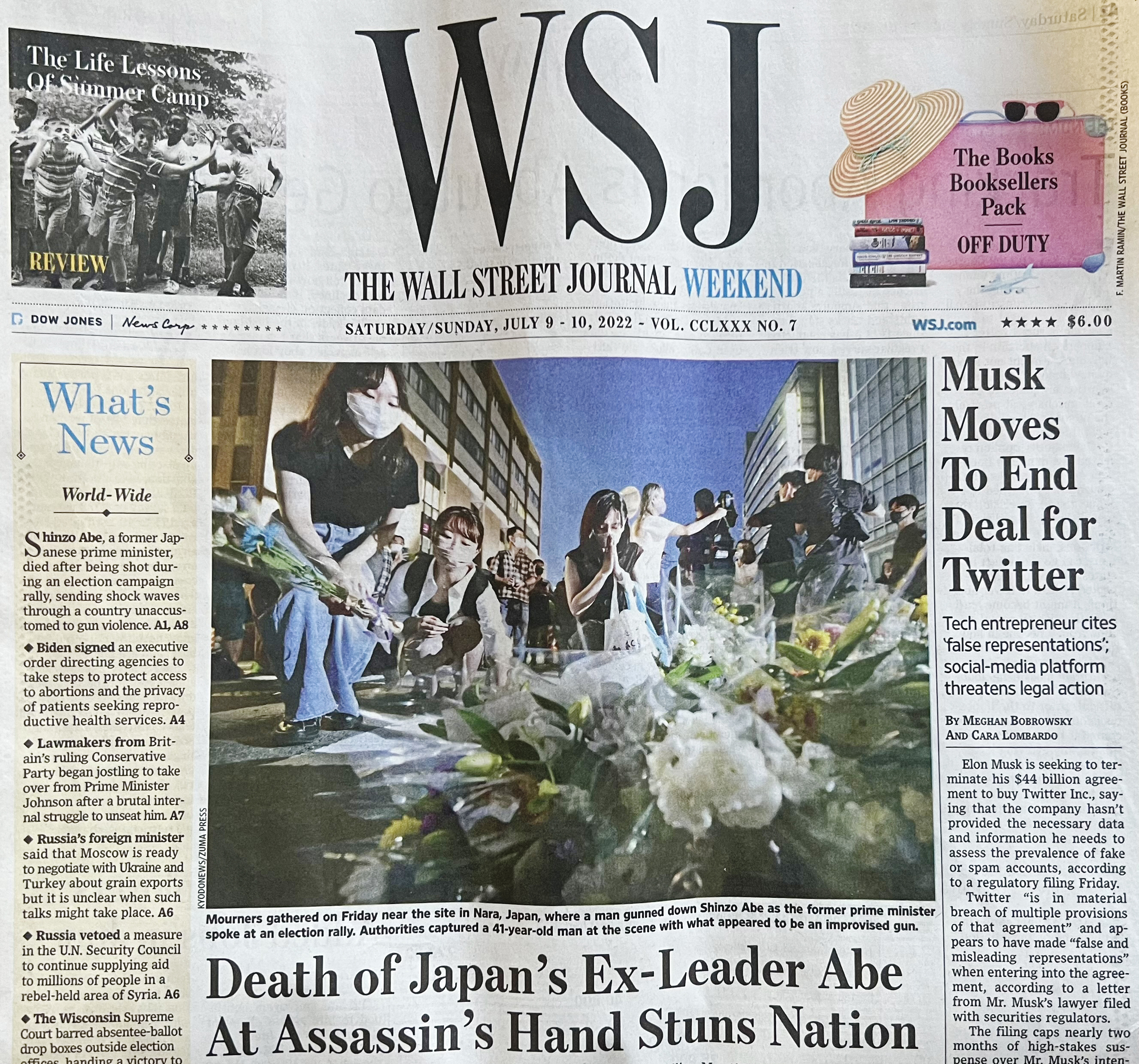 July 8, 2022, Nara, Japan: People pray near the location of the fatal shooting of former Japanese Prime Minister Shinzo Abe. The 67 yr old statesman was killed by a lone gunman during a House of Councillors election stump speech in Nara, western Japan, earlier in the day. (Credit Image: © Kyodonews via ZUMA Press)