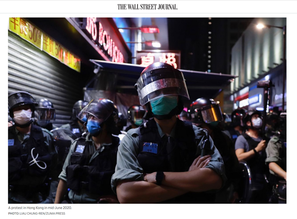 June 12, 2020, Hong Kong, China: A Riot Police officer crosses his elbows rejecting protesters and medias from advancing during a citizens demonstration to commemorate the first anniversary of the Anti-Extradition Law Protest. (Credit Image: © Liau Chung-ren/ZUMA Wire)