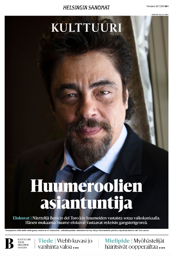 ZUMA’s Armando Gallo Lands Full Page Image in Finnish Helsingin Sanomat, July 25, 2022 Posted by ZUMAPRESS.com on July 28, 2022 Posted in: ZUMALAND. Leave a comment August 7, 2018 – Hollywood, California, U.S. – Actor BENICIO DEL TORO promotes the TV series ‘Escape at Dannemora’ in Hollywood. (Credit Image: © Armando Gallo/ZUMA Studio) Scott Mc Kiernan, Founder & Editor-in-Chief, ZUMA Press Share this: Share on Facebook (Opens in new window) Facebook Share on LinkedIn (Opens in new window) LinkedIn Share on X (Opens in new window) X Like Loading... Related Posts navigation ← ZUMA’s Liau Chung Ren Featured on Worldcrunch ZUMA’s David Barak on The Guardian →