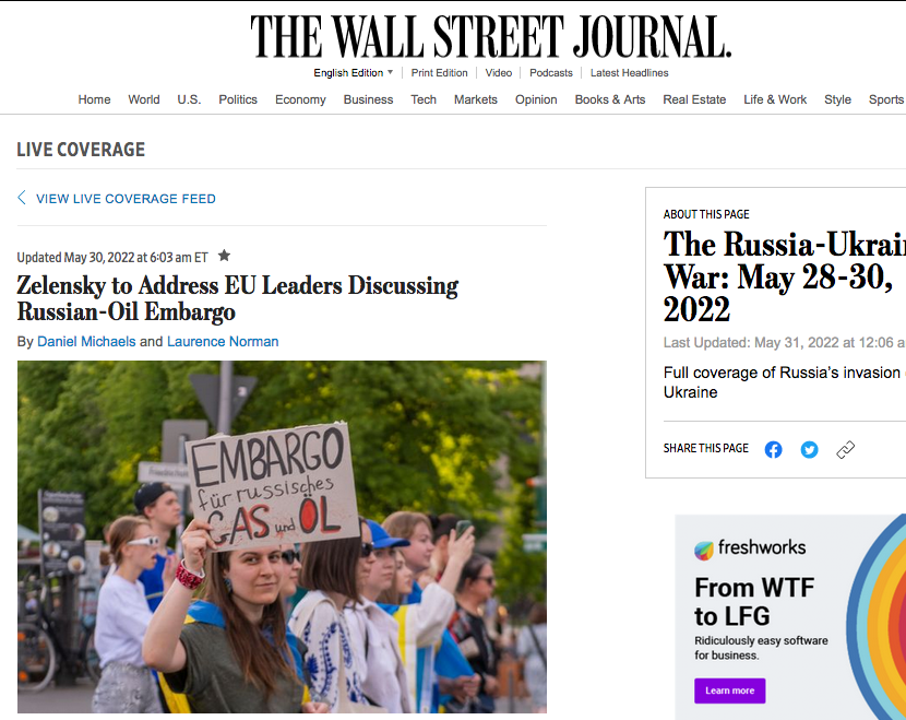 May 19, 2022, Berlin, Germany: A protester holds up a sign calling for n embargo on Russian oil in Berlin during a pro-Ukraine protest on, Thursday, May 19, 2022. (Credit Image: © Dominic Gwinn/ZUMA Press Wire)