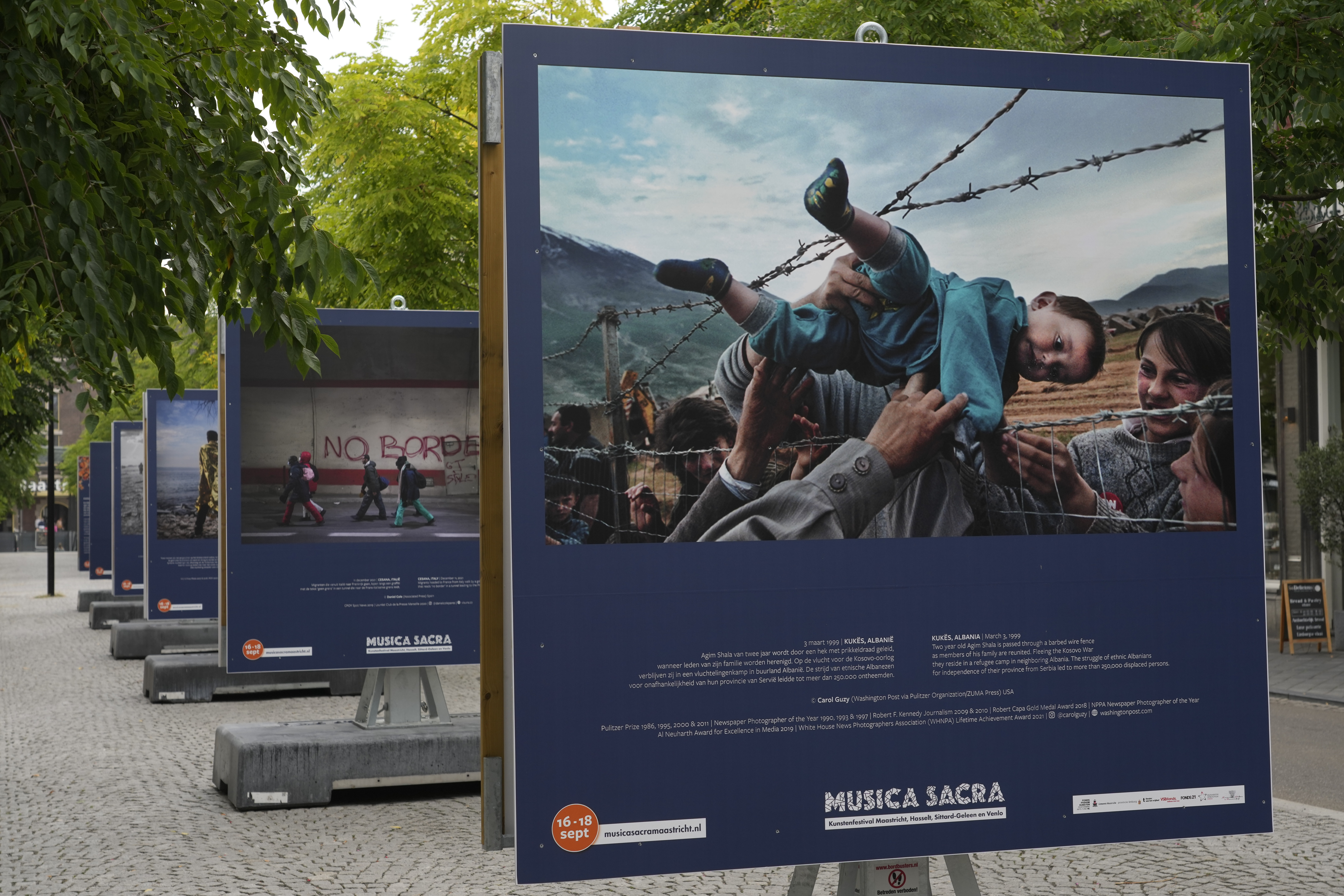 ZUMA’s Carol Guzy Featured in Outdoor Exhibit Posted by ZUMAPRESS.com on September 13, 2022 Posted in: ZUMALAND. Leave a comment An outdoor exhibition of pictures made by international photo journalists, including Pulitzer Prize winning photographer Carol Guzy, lines the streets of Maastricht. The exhibit is running from September 8-October 6. Exodus photo exhibition, part of the annual Musica Sacra festival in Maastricht, Netherlands, Sunday, Sept. 11, 2022. Mandatory credit © Peter Dejong Exodus photo exhibition, part of the annual Musica Sacra festival in Maastricht, Netherlands, Saturday, Sept. 10, 2022. Mandatory credit © Peter Dejong Scott Mc Kiernan, Founder & Editor-in-Chief, ZUMA Press Share this: Share on Facebook (Opens in new window) Facebook Share on LinkedIn (Opens in new window) LinkedIn Share on X (Opens in new window) X Like Loading... Related Posts navigation ← ZUMA’s Queen Elizabeth Images Featured on Multiple Ilta-Sanomat Galleries The Detroit Free Press via ZUMA Featured in the New York Times →
