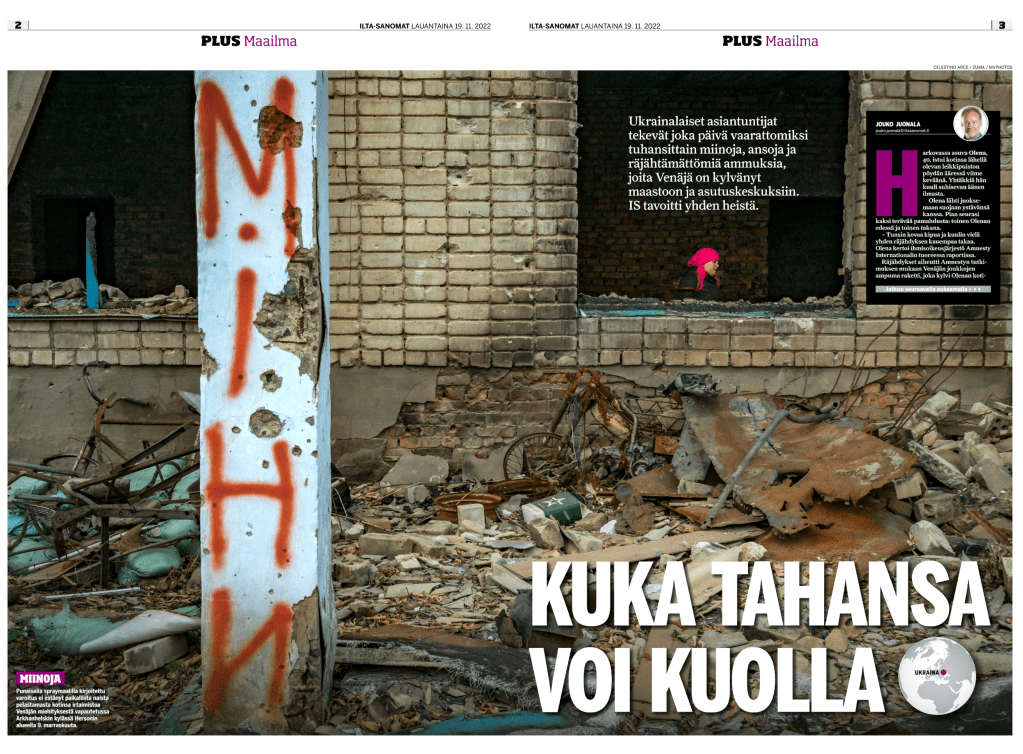 November 9, 2022, Arkhanhelske, Ukraine: A graffiti warning of mines in a destroyed building in Arkhanhelske, a recent liberated village by ukrainian army after the russian occupantion in Kherson province, Ukraine. Even with the risk of mines, locals try to save their belongings in the ruins of their flats. (Credit Image: © Celestino Arce/NurPhoto via ZUMA Press)