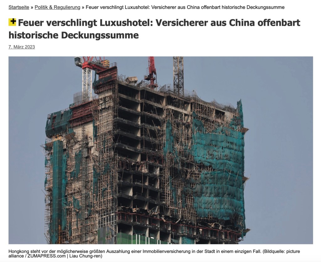 March 4, 2023, Hong Kong China: The top part of a 42-story hotel under construction was seriously damaged in the massive fire on the late evening of Mar 2,2023. Hong Kong is poised for what could be City’s largest ever property related insurance payout in a single case after a massive Class-4 Fire engulfed EMPIRE GROUP’s Kimpton Hotel which was scheduled to complete within the year. The massive fire caused damage to neighbouring buildings which include residential mansion, newly built office building and hotels. The claim could run from 200 million HK Dollars to as much as 500 million HK Dollars (from 25 million US Dollars up). The insurance payout, if materialized, would be the highest level of compensation in Hong Kong history. (Credit Image: © Liau Chung-ren/ZUMA Press Wire)