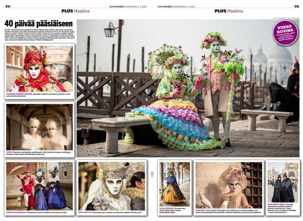 ZUMA’s Luigi Berengo/LPS Fills Doubletruck with Venice Carnival Imagry Posted by ZUMAPRESS.com on March 10, 2023 Posted in: ZUMALAND. Leave a comment Models wear masks of the Venice Carnival 2023 in San Marco Square during the Venice Carnival, Feb 2023. (Credit Image: © Luigi Berengo/LPS via ZUMA Press Wire) Scott Mc Kiernan, Founder & Editor-in-Chief, ZUMA Press Share this: Share on Facebook (Opens in new window) Facebook Share on LinkedIn (Opens in new window) LinkedIn Share on X (Opens in new window) X Like Loading... Related Posts navigation ← ZUMA’s A. Perez Meca on the Cover of the WSJ ZUMA’s Liau Chung Ren on The Journal →