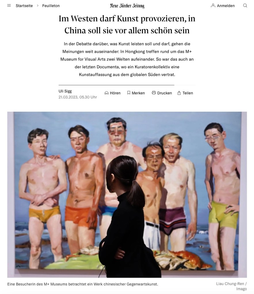 November 12, 2021, HONG KONG, CHINA: A woman gazing upon Contemporary Chinese Art depicting portraiture of a naked Chinese family inside newly opened exhibition gallery at M+ Hong Kong Museum.Nov-12,2021Hong Kong.ZUMA/Liau Chung-ren (Credit Image: © Liau Chung-ren/ZUMA Press Wire)
