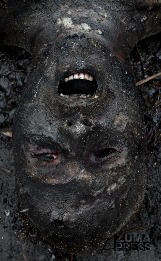 . - April 3, 2022, Bucha, Kyiv Oblast, Ukraine: Anguished face of war, as bodies, including those that appear to be Russian soldiers burned in or near their armored vehicles in the streets of Bucha, in the suburbs of Kyiv. (Credit Image: © Carol Guzy/ZUMA Press Wire)