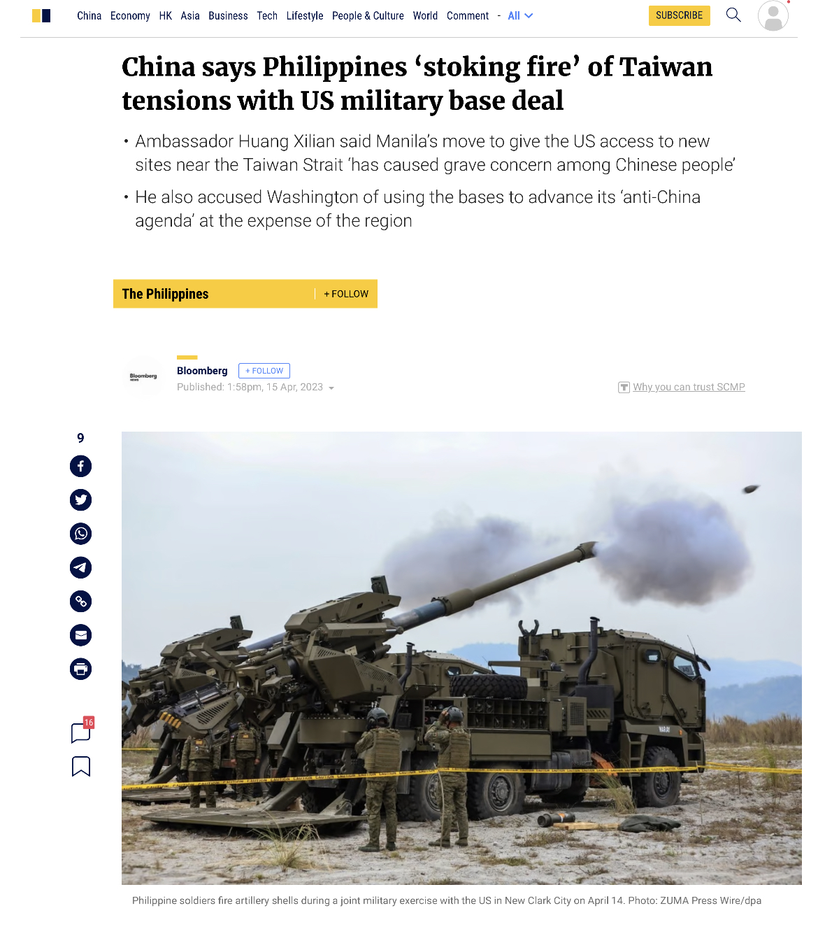 April 14, 2023, New Clark City, The Philippines: Filipino Army soldiers fire an artillery shells using self-propelled artillery vehicles during a combined field artillery live fire exercise as part of the US-Philippines Balikatan military exercises. The annual Balikatan – meaning Shoulder-to-Shoulder in Tagalog – drills joined by American and Filipino troops this year are said to be the largest one ever amid growing instability in the Indo-Pacific region. It comes days after tensions in the Taiwan Strait significantly intensified following a series of military exercises held by China in response to Taiwanese President Tsai Ing-wen’s meetings with U.S. officials. (Credit Image: © Daniel Ceng Shou-Yi/ZUMA Press Wire)