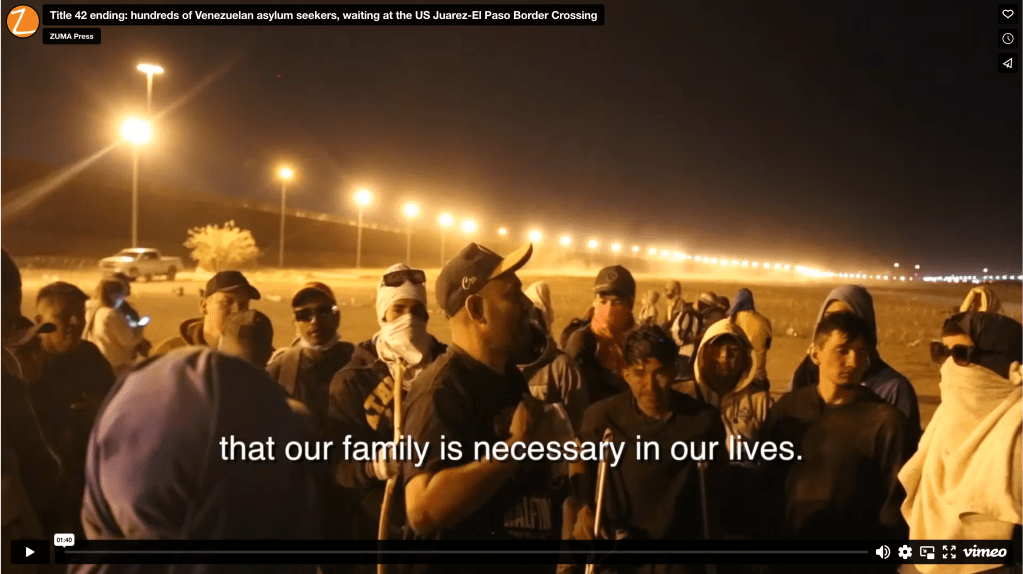 Title 42 ending: hundreds of Venezuelan asylum seekers, waiting at the US Juarez-El Paso Border Crossing Posted by ZUMAPRESS.com on May 11, 2023 Posted in: ZUMALAND. Leave a comment Hundreds of Venezuelan asylum seekers, waiting an a contained area steps inside the US, hoping to be allowed to cross over and apply for asylum. Video credit © Belinda Soncini/ZUMA Press Share this: Share on Facebook (Opens in new window) Facebook Share on LinkedIn (Opens in new window) LinkedIn Share on X (Opens in new window) X Like Loading... Related Posts navigation ← Scott Mc Kiernan presents zReportage.com Story of the Week #888: TUESDAY May 9, 2023: ‘BATTLE FOR BAKHMUT’ by Award winning photojournalists Ashley Chan, Laurel Chor and Mykhaylo Palinchak from SOPA Images ZUMA’s Tolga Uluturk in Dutch Daily →
