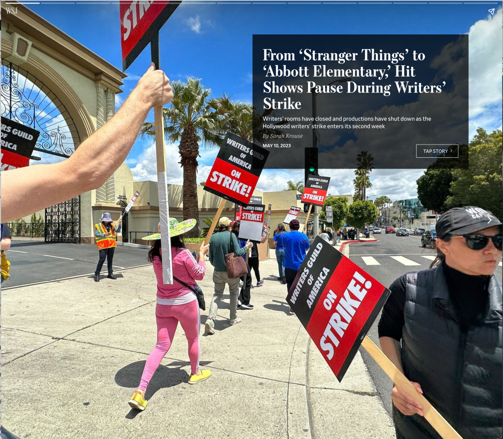 May 4, 2023, Hollywood, California, U.S: Picketers in front of Netflix Studios in Hollywood in support of Writers Guild of America Writers’ Strike, day 3, the first Writer’s strike in 15 years. Thousands of writers and others in the film and TV industry carried signs on the picket lines in front of Los Angeles/Hollywood studios to demand more pay, controls on AI and better work conditions. (Credit Image: © Amy Katz/ZUMA Press Wire)