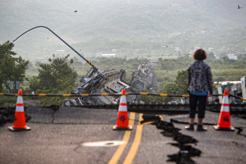 September 19, 2022, Yuli, Hualien County, Taiwan: A resident oversees a collapsed bridge after a magnitude 6.8 earthquake hitting Taiwan caused severe damages to buildings, bridges and different structures across Taiwan on 18 September. Schools in Hualien and several train services have been suspended as international experts have said there could be aftershocks in the coming days or weeks. (Credit Image: © Daniel Ceng Shou-Yi/ZUMA Press Wire)