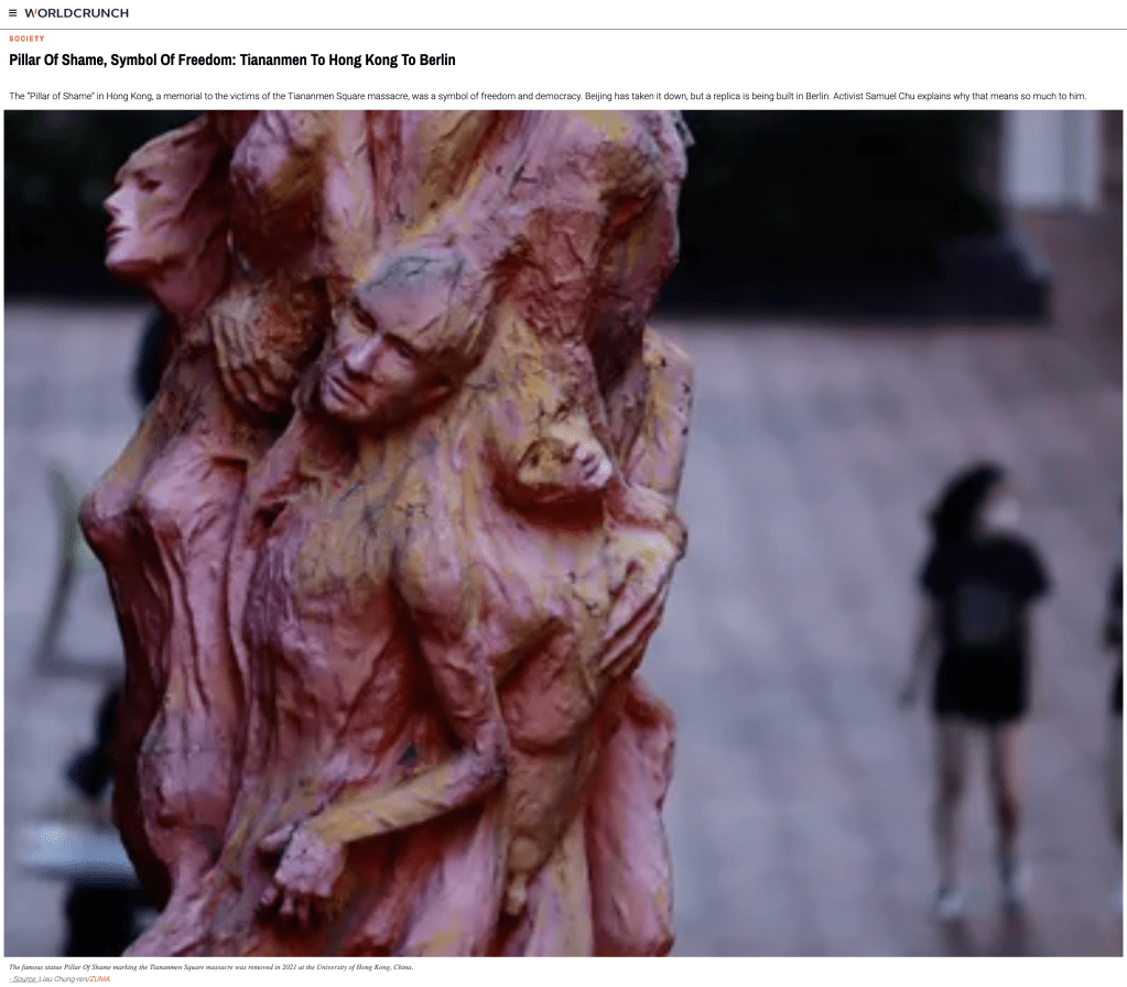 December 24, 2021, Hong Kong, China: The famous statue Pillar Of Shame marking the Tiananmen Square massacre was removed late on Wednesday at the University of Hong Kong. FILE PHOTO: October 5, 2021, Hong Kong, China: PILLAR OF SHAME, a June 4th Memorial, a sculpture work by Danish artist Jens Galschiot inside Hong Kong University campus. (Credit Image: © Liau Chung-ren/ZUMA Press Wire)