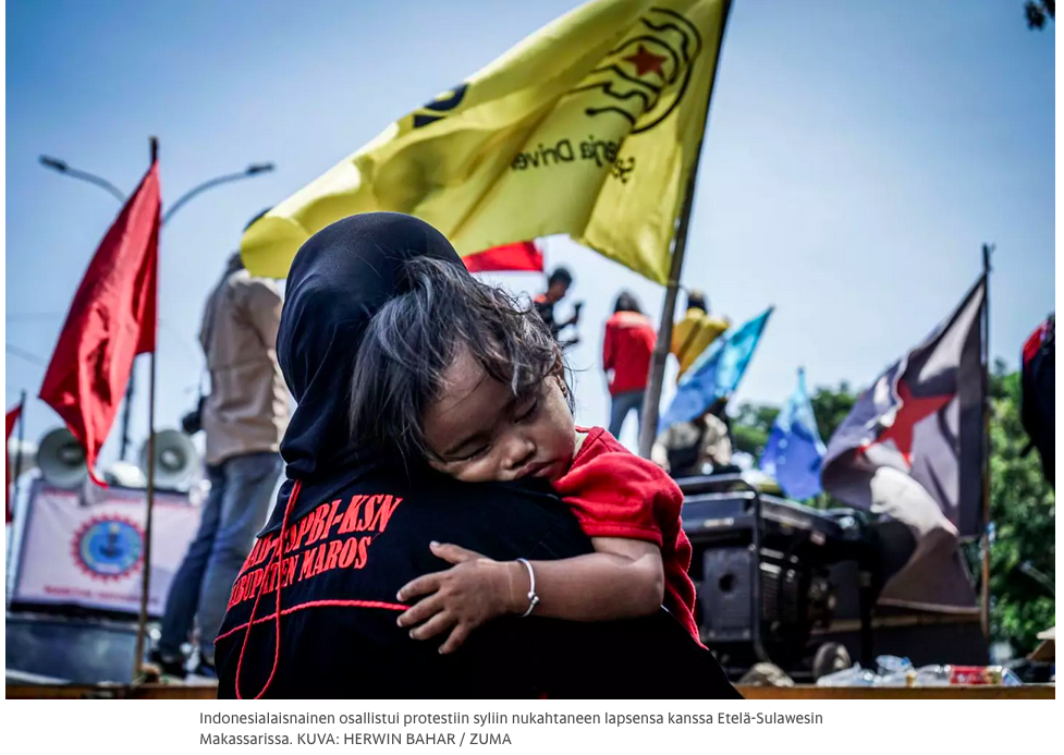 May 1, 2023, Makassar, South Sulawesi, Indonesia: A mother holding her sleeping child while taking part in a demonstration commemorating International Labor Day which coincides on May 1. The activity was carried out by blocking the road in front of the South Sulawesi Regional People’s Representative Council office. (Credit Image: © Herwin Bahar/ZUMA Press Wire)