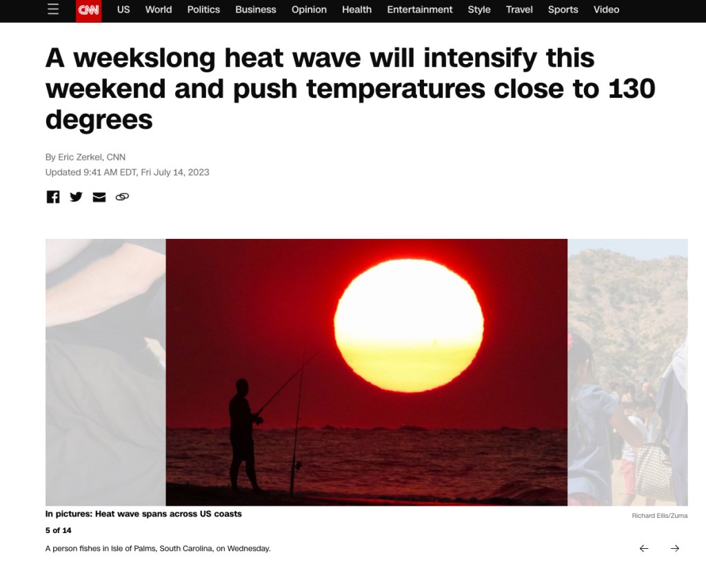 July 12, 2023, Isle Of Palms, SC, United States: A fisherman silhouetted against a dramatic sunrise appearing as a giant ball over the beach, July 12, 2023 in Isle of Palms, South Carolina. A prolonged heat wave across the southern United States continues to bring extremely hot, humid weather to the region.