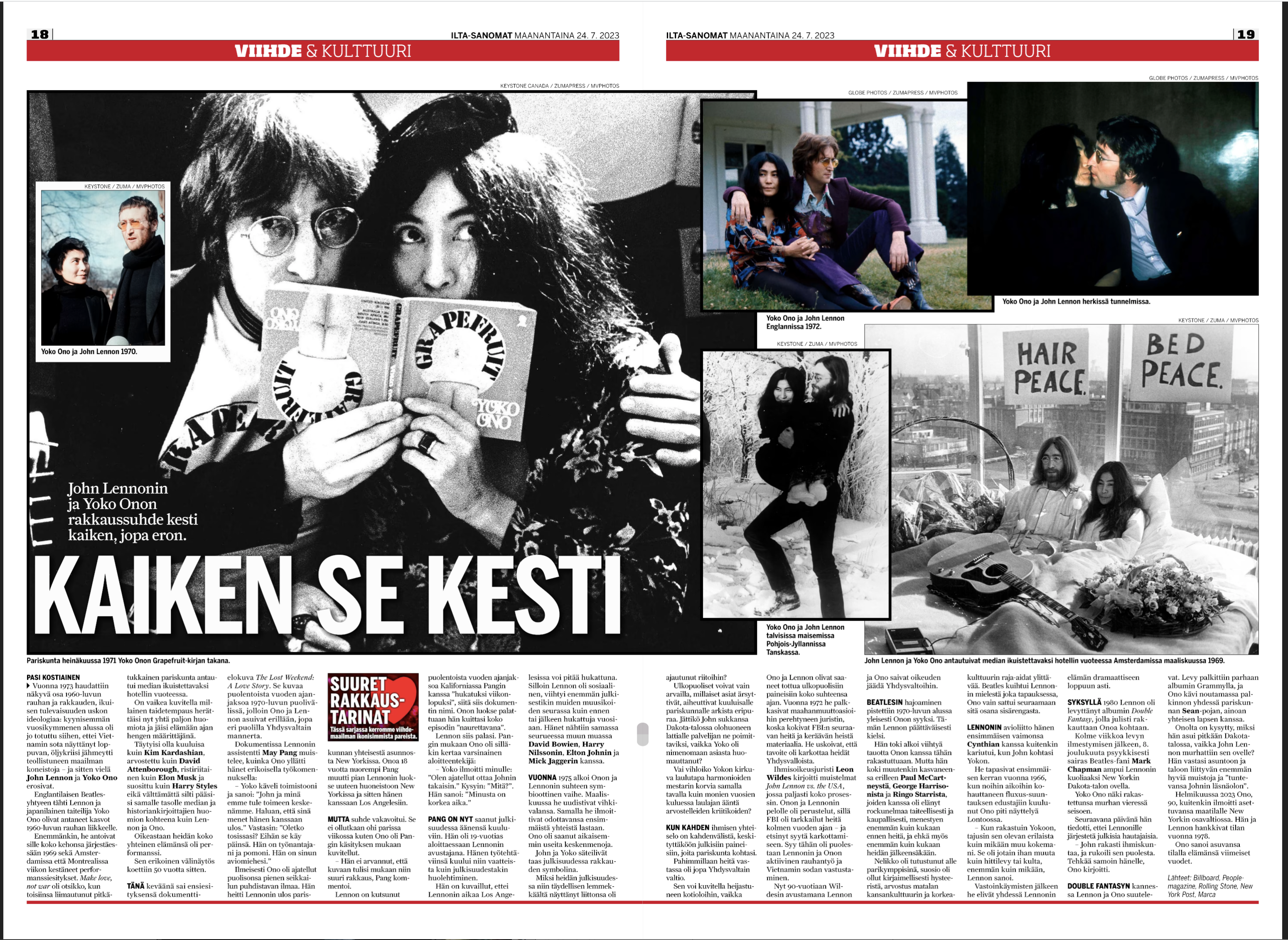 Circa 1964: JOHN LENNON (1940-1980) and YOKO ONO peak out from behind Yoko Ono’s book “Grapefruit”. (Credit Image: © Keystone CANADA/Keystone Canada/ZUMAPRESS.com)