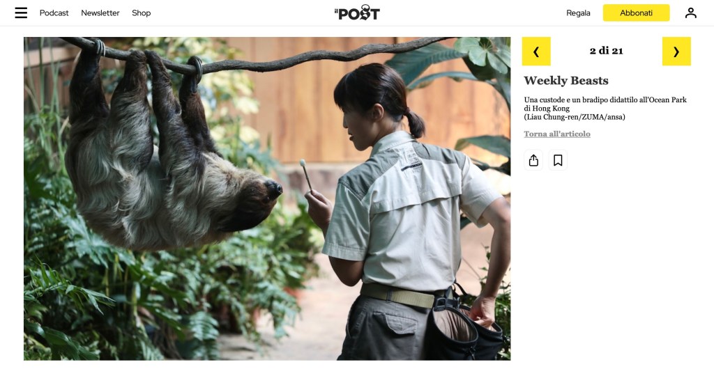 August 3, 2023, HONG KONG, CHINA: An animal caretaker gestures with a wand as she approaches male Two-Toed Sloth at OCEAN PARK,Hong Kong. New exhibition corner is opened at the Ocean Park for Sloth in order to strengthen public awareness for conservation of endangered species in the animal kingdom.Aug-3,2023Hong Kong.ZUMA/Liau Chung-ren (Credit Image: © Liau Chung-ren/ZUMA Press Wire)