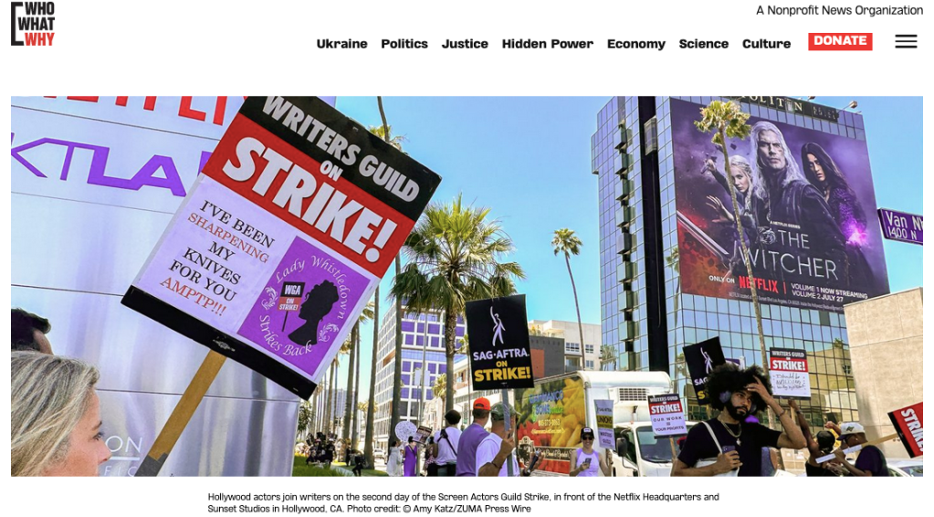 July 18, 2023, Hollywood, California, U.S.A: Hollywood Actors join Writers (who have been striking for two months) on the second day of the Screen Actors Guild Strike, in front of the Netflix Headquarters and Sunset Studios in Hollywood, CA. Spirits were high in spite of the Extreme Heat warning underway in Los Angeles, and hot tempers over perceived corporate greed and the failure of movie and television Studio executives to meet their needs. SAG-AFTRA represents approximately 160,000 actors, announcers, broadcast journalists, dancers, DJs, news writers, news editors, program hosts, puppeteers, recording artists, singers, stunt performers, voiceover artists and other media professionals. (Credit Image: © Amy Katz/ZUMA Press Wire)