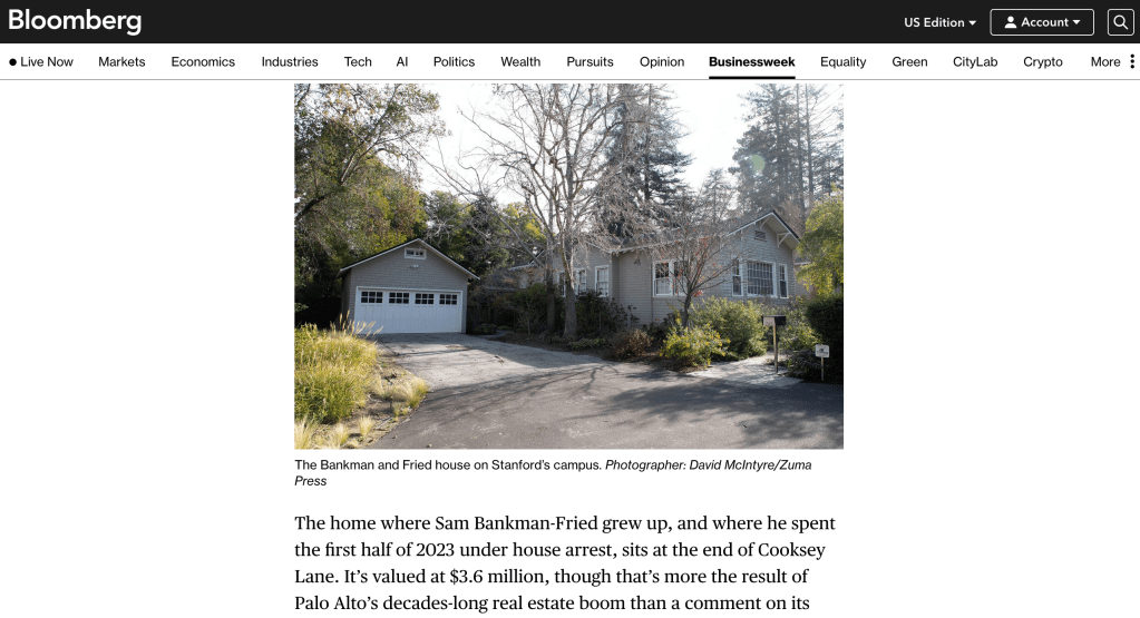 December 23, 2022, Palo Alto, California, USA: House of the parents of Sam Bankman-Fried, the former CEO of FTX, in Palo Alto, California near the Stanford University campus. Bankman-Fried will be staying at the house while he is out on bail while he awaits trial.(Credit Image: © David mcIntyre/ZUMA Press Wire)