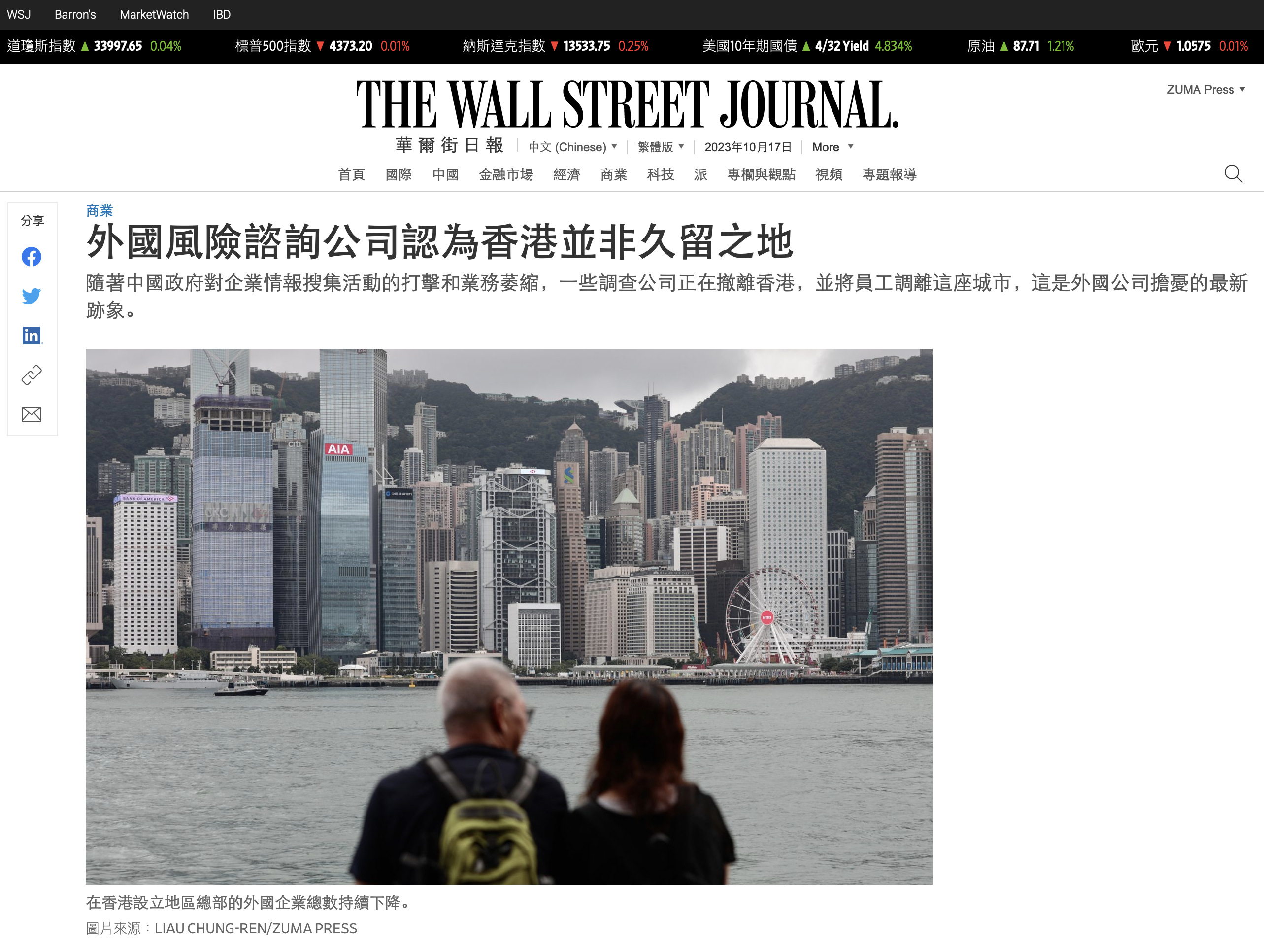 June 7, 2023, HONG KONG, CHINA: View of Hong Kong’s financial centre with HSBC Headquarter in the middle as seen from the Kowloon Peninsula.June-7,2023Hong Kong.ZUMA/Liau Chung-ren (Credit Image: © Liau Chung-ren/ZUMA Press Wire)
