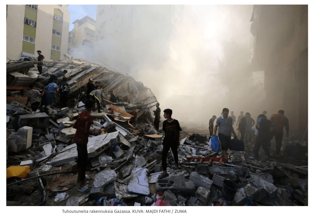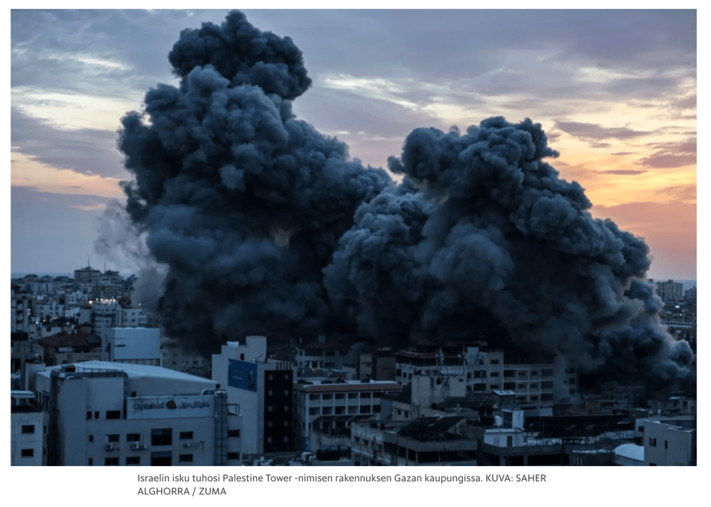 October 7, 2023, Gaza, Gaza, Palestine: Destruction of the Palestine Tower in Al-Rimal neighborhood in the central Gaza Stri (Credit Image: © Saher Alghorra/ZUMA Press Wire)