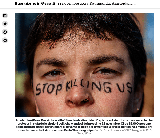 ZUMA photographer Liau Chung Ren and Ana Fernandez/SOPA Images both landed images in the November 14, 2023 picture gallery from Italian daily La Svolta.