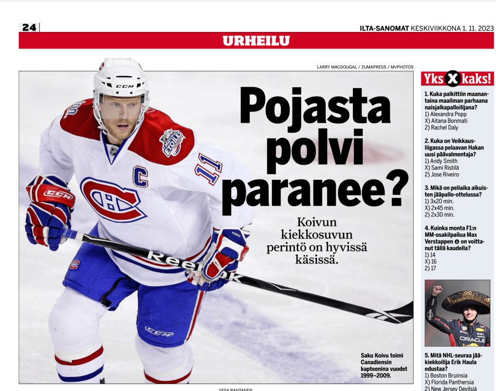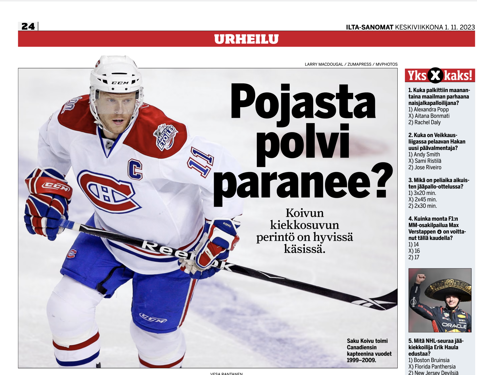 Feb 12, 2009 – Calgary, Alberta, Canada – NHL player profile photo on Montreal Canadiens’ Saku Koivu, from Finland, during a recent hockey game in Calgary. (Credit Image: © Larry MacDougal/ZUMA Wire)