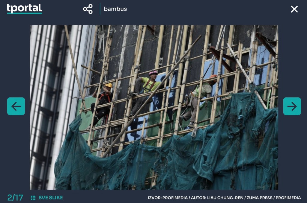 Caption for both images: April 19, 2023, Hong Kong, China: In Hong Kong, workers maneuver through bamboo scaffolding that they are going to dismantle after construction on a 42 story high hotel. The hotel was damaged in a massive fire early last month. (Credit Image: © Liau Chung-ren/ZUMA Press Wire)