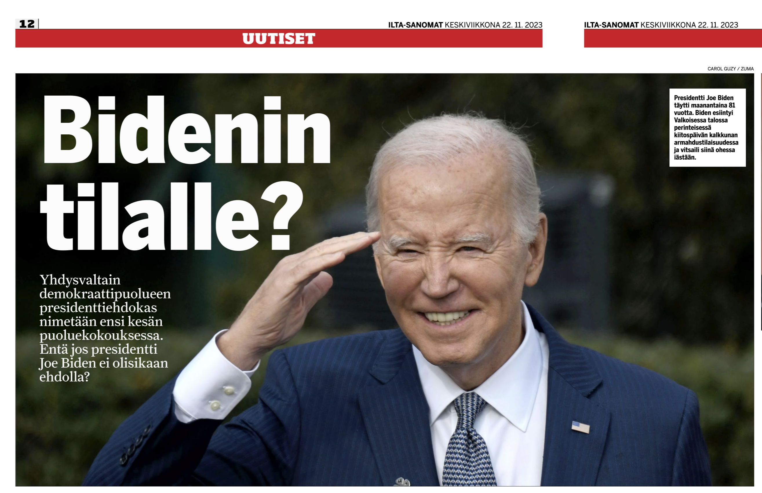 November 20, 2023, Washington, DC, USA: President Joe Biden gives a traditional presidential pardon to turkeys Liberty & Bell at the National Thanksgiving Turkey ceremony at the White House in Washington DC on November 20, 2023. He joked about his age as he celebrates his 81st birthday today. (Credit Image: © Carol Guzy/ZUMA Press Wire)