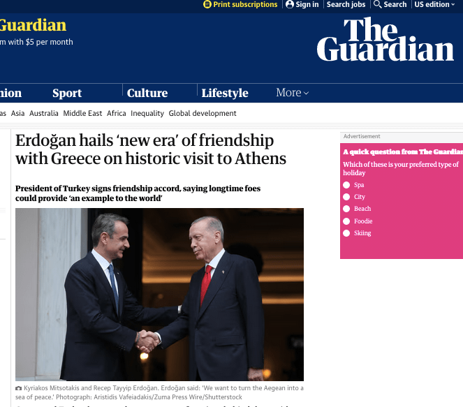 December 7, 2023, Athens, Greece: Greek Prime Minister KYRIAKOS MITSOTAKIS welcomes Turkish President RECEP TAYIP ERDOGAN in maximos mansion. (Credit Image: © Aristidis Vafeiadakis/ZUMA Press Wire)