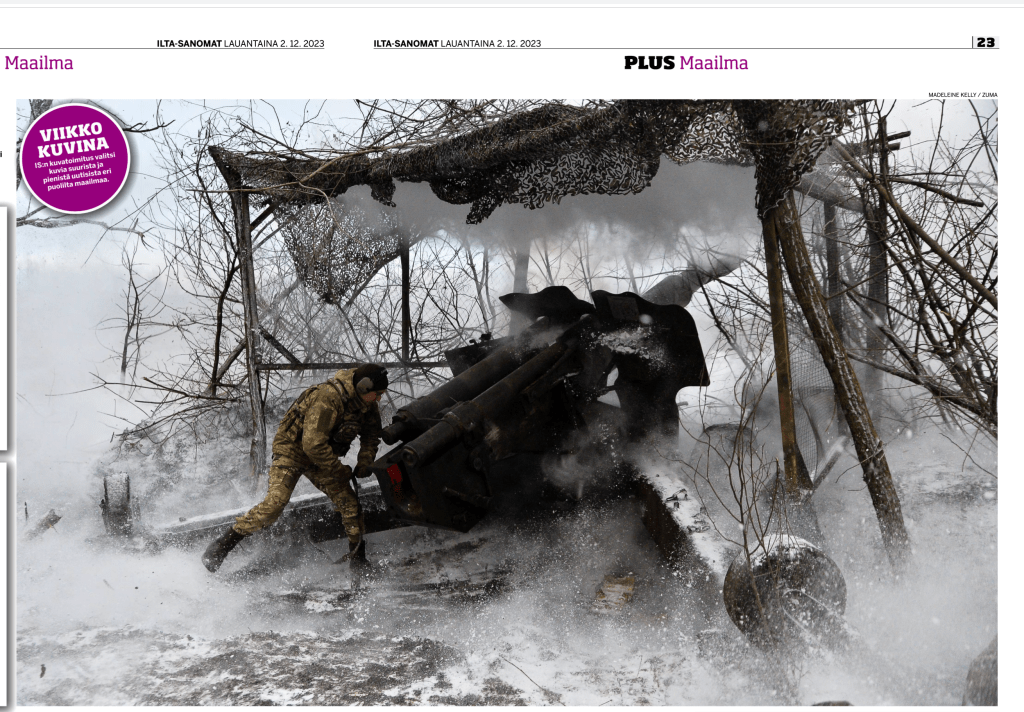 November 27, 2023, Kupyansk, Kharkiv Oblast, Ukraine: A Ukrainian soldier fires a D-20 Howitzer at Russian forces. Russian assaults continue despite the onset of Winter in Ukraine. (Credit Image: © Madeleine Kelly/ZUMA Press Wire)