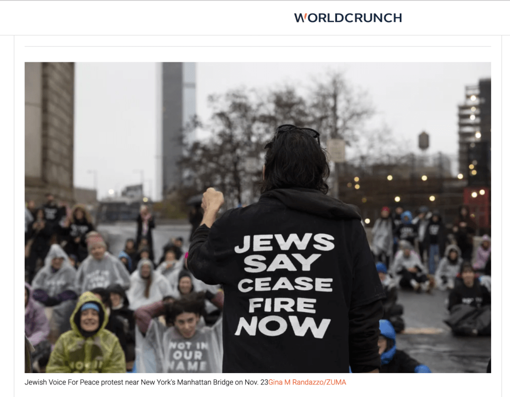 December 8, 2023, New York, New York, USA: Pro-Palestinian protesters demonstrate in Manhattan’s Civic Center before marching to City Hall and Wall Street demanding an end to U.S. funding for Israel. A protester wears a shirt that reads ‘Jews say cease fire now.’ Signs read ‘End all U.S. Aid to Israel’ (Credit Image: © Gina M Randazzo/ZUMA Press Wire)