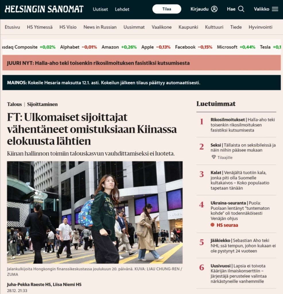 December 20, 2023, Hong Kong, China: In Hong Kong, citizens crossing main avenue at the heart of financial centre in Central. Overseas think-tank have issued a latest report on global human rights ranking, putting Hong Kong in the 46th place next to Myanmar, a 17 places down compare to previous report of the similar survey. (Credit Image: © Liau Chung-ren/ZUMA Press Wire)