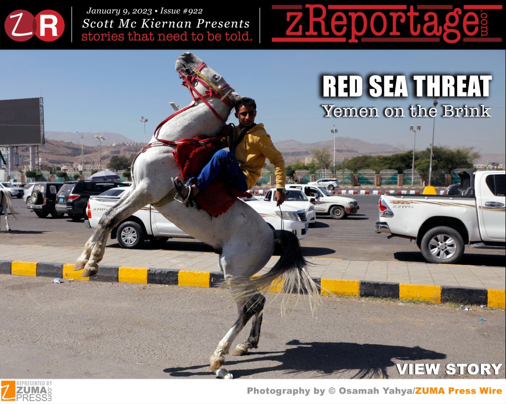 Scott Mc Kiernan Presents zReportage.com Story of the Week #922: TUESDAY January 9, 2024: ‘RED SEA THREAT: Yemen on the Brink’ by award winning, ZUMA Press photo-journalist Osamah Yahya: Yemen, the poorest country in the Middle East, is in the midst of a massive humanitarian crisis that only continues to deteriorate. Rising hunger levels have left many families close to breaking point. Fighting between Houthi rebels and the Saudi coalition that backs Yemen’s internationally recognized government has largely subsided in 2023, but Houthis have repeatedly attacked ships transiting the Red Sea in response to Israel’s war on Hamas. The Red Sea is one of the world’s most important waterways for global trade. Fears are growing that the broader world economy could be disrupted as commercial vessels are forced to reroute. Welcome to: ‘RED SEA THREAT: Yemen on the Brink’