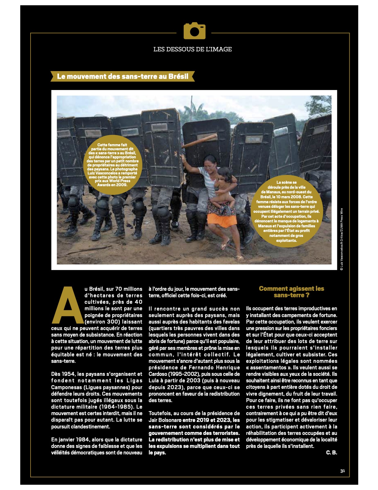 March 10, 2008 – Lagoa Azul 2, Amazonas, Brazil – Amazon Indian tribe called Sater-mau battle local police over a land disbute. Five-months pregnant, Mani Sater, 21, with her one-year old on her hip, tries to stop the advance of Amazonas state policemen who were expelling the woman from a privately-owned tract of land on the outskirts of Manaus, in the heart of the Brazilian Amazon. Her husband and 400 other tribe members were squatting on land in a rural sector between the cities of Itacoatiara and Manaus. The property owner, a Japanese citizen, asked the police to intervene in removing the squaters. The landless peasants tried in vain to resist the eviction using bows and arrows against police using tear gas and trained dogs. The police imprisoned Sater after knocking her down and shooting her in the leg. Her baby and her husband were injured and detained as well. (Credit: © Luiz Vasconcelos/A Critica/ZUMApress.com)