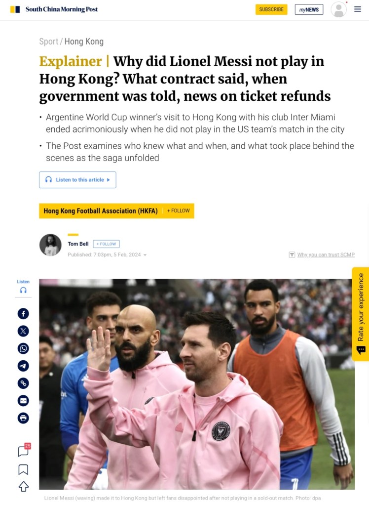February 4, 2024, Hong Kong, China: International football superstar and captain of Inter Miami CF, LIONEL MESSI wave at the fans at Hong Kong Stadium on the day of the team’s match against a Hong Kong Team. Messi did not participate in the football game which resulted in booing by the fans at the end of the match. (Credit Image: © Liau Chung-ren/ZUMA Press Wire)
