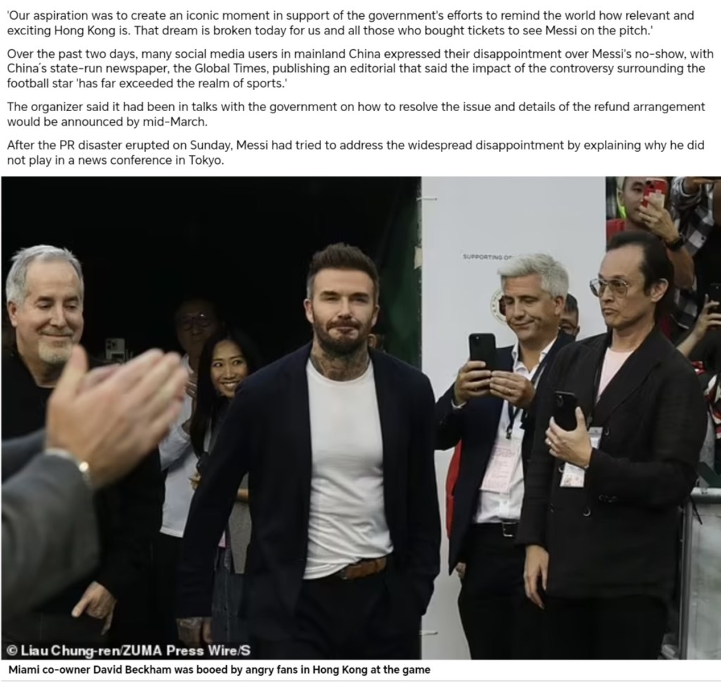 February 3, 2024, Hong Kong, CHINA: Famous British football star player and current owner of Inter Miami CF, David Beckham enters Hong Kong Stadium receiving cheers from enthusiastic fans during open practice today. (Credit Image: © Liau Chung-ren/ZUMA Press Wire)