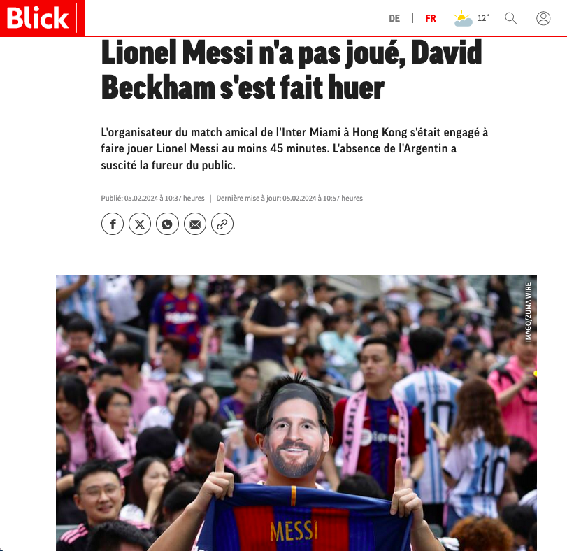 February 3, 2024, Hong Kong, China: In Hong Kong, a fan in a Messi face mask watches open practice. Yesterday during a football match between visiting Inter Miami and the Hong Kong Team things turned sour, with thousand of fans chanting ‘refund’ after the game as international football superstar, Lionel Messi did not participate in the actual football match, but sat through the game on the bench. Owner of Inter Miami, David Beckham was booed by the football fans at the stadium after the game. (Credit Image: © Liau Chung-ren/ZUMA Press Wire)